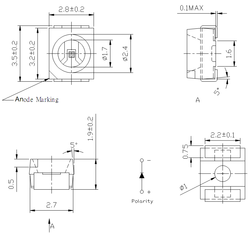 3528平面四脚黄光